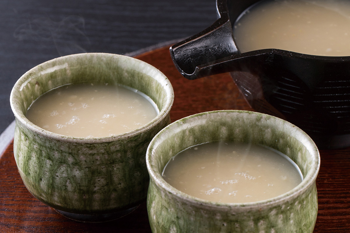 Für Amazake zuerst Reisbrei zubereiten und auf 50–60 °C abkühlen lassen. Mischen Sie den Reis-Koji und den Brei und halten Sie die Temperatur in einem Wasserbad bei etwa 50-60 °C. Rühren Sie gelegentlich um und halten Sie die Mischung etwa 10 Stunden lang warm, bis sie fertig ist. Beachten Sie, dass sie bei zu hohen Temperaturen ihre Süße verliert und bei zu niedrigen Temperaturen sauer wird. Bewahren Sie das fertige Amazake im Kühlschrank auf und verbrauchen Sie es so schnell wie möglich.Wenn braunes Reis-Koji verwendet wird, hat es im Gegensatz zu weißem Reis-Koji Kleie auf der Oberfläche, sodass es Feuchtigkeit nicht so leicht aufnimmt wie Reis. Aus diesem Grund ist es einfacher, es in einem Mixer zu zerkleinern, bevor Wasser hinzugefügt wird.